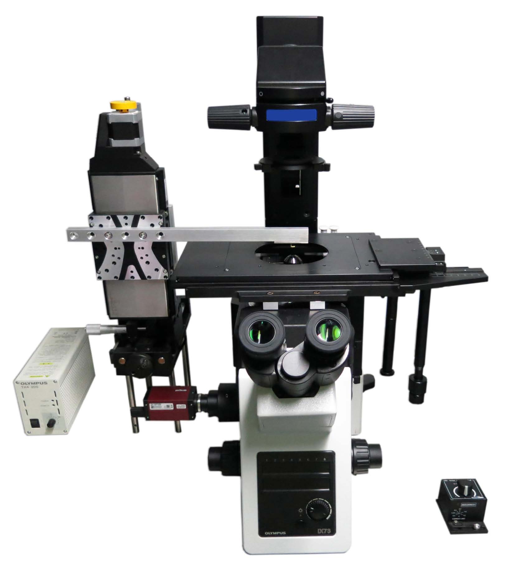 bioPSI磁鑷單分子操縱系統(tǒng)基本配置: ? 研究級(jí)倒置顯微鏡,100X油鏡 ? 閉環(huán)壓電陶瓷物鏡控制器 ? 高速CCD相機(jī) ? 高精度電動(dòng)平動(dòng)平臺(tái) ? 高精度電動(dòng)轉(zhuǎn)動(dòng)平臺(tái)(可選) ? 磁鑷系統(tǒng)控制器 ? 集成控制系統(tǒng):實(shí)時(shí)操控、數(shù)據(jù)采集與分析