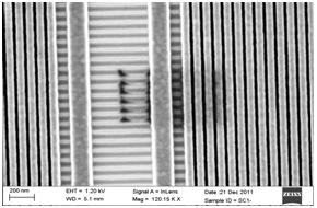 圖3.Imaging Conditions: 圖4.Imaging Conditions: 1.2kV Accelerating Voltage 1.2kV Accelerating Voltage 144pA beam current 144pA beam current 6.08-10-6 Torr chamber pressure Note: After an initial clean time of Cleaning Conditions: 3 minutes,only a slight 50 Watts 13 minutes (total clean time) contamination rectangle 7.32-10-4 Torr chamber pressure was visible after scanning for 10 minutes