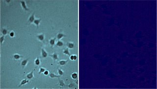 Fig 2 Bright field image of HEK 293A cells with mutant histamine (left), SPR image of small molecule drug binding to HEK 293A cells with mutant histamine (right).