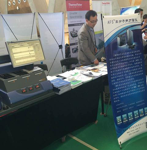 4月22日,第二十屆天津大學(xué)儀器設(shè)備展示會(huì)在北洋園校區(qū)體育館盛大開(kāi)幕,天津奧辛博科技有限責(zé)任公司有幸參與此次展會(huì)。此次展會(huì),我司推薦交流的儀器主要有:?jiǎn)畏肿勇暳ψV儀(AFS)、表面等離子共振儀(SPR)、多重光散射儀、原子力顯微鏡、納米力學(xué)測(cè)試系統(tǒng)、臺(tái)式場(chǎng)發(fā)射掃描電鏡等。通過(guò)與參展用戶現(xiàn)場(chǎng)溝通交流,進(jìn)一步讓更多的用戶了解到適合其研究領(lǐng)域的新型儀器,并更廣泛地推廣了儀器應(yīng)用領(lǐng)域。