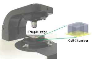 SPRm200把SPR技術(shù)和光學(xué)成像結(jié)合起來(lái),能夠把活細(xì)胞成像和對(duì)藥物分子結(jié)合反應(yīng)定位分布圖像實(shí)時(shí)地表征出來(lái)。如圖1所示,明視場(chǎng)聚光燈將生長(zhǎng)于芯片表面的細(xì)胞照亮,在底部的照相機(jī)捕獲活細(xì)胞的明視場(chǎng)。同時(shí)SPR光源沿共振角度投射光線到傳感器芯片上,由SPRm200探測(cè)器捕捉反射光,并把在每一個(gè)像素點(diǎn)上的SPR響應(yīng)信號(hào)記錄下來(lái)構(gòu)成SPR像圖。